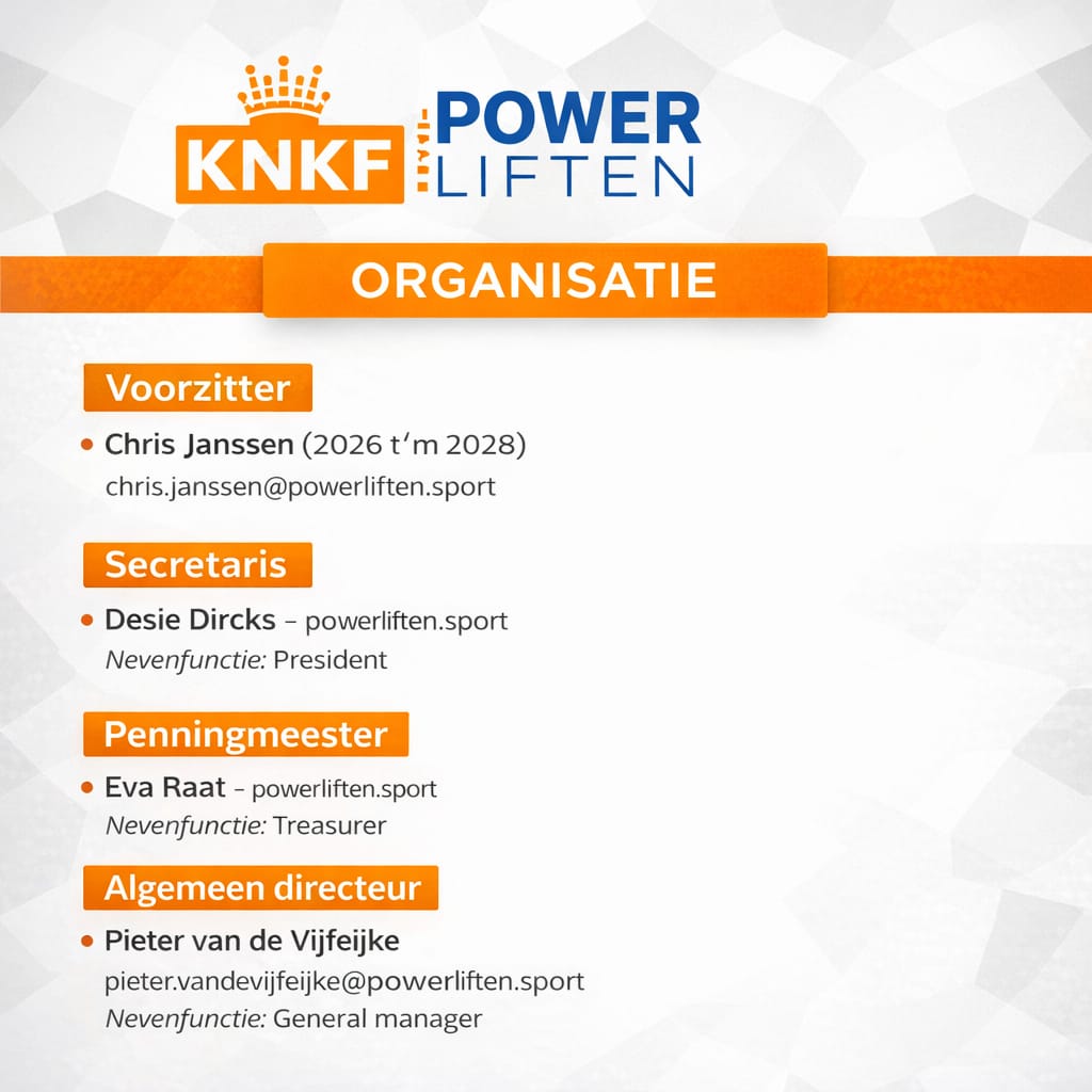 Organigram KNKF & KNKF sectie powerliften & stichting evenementen NPB