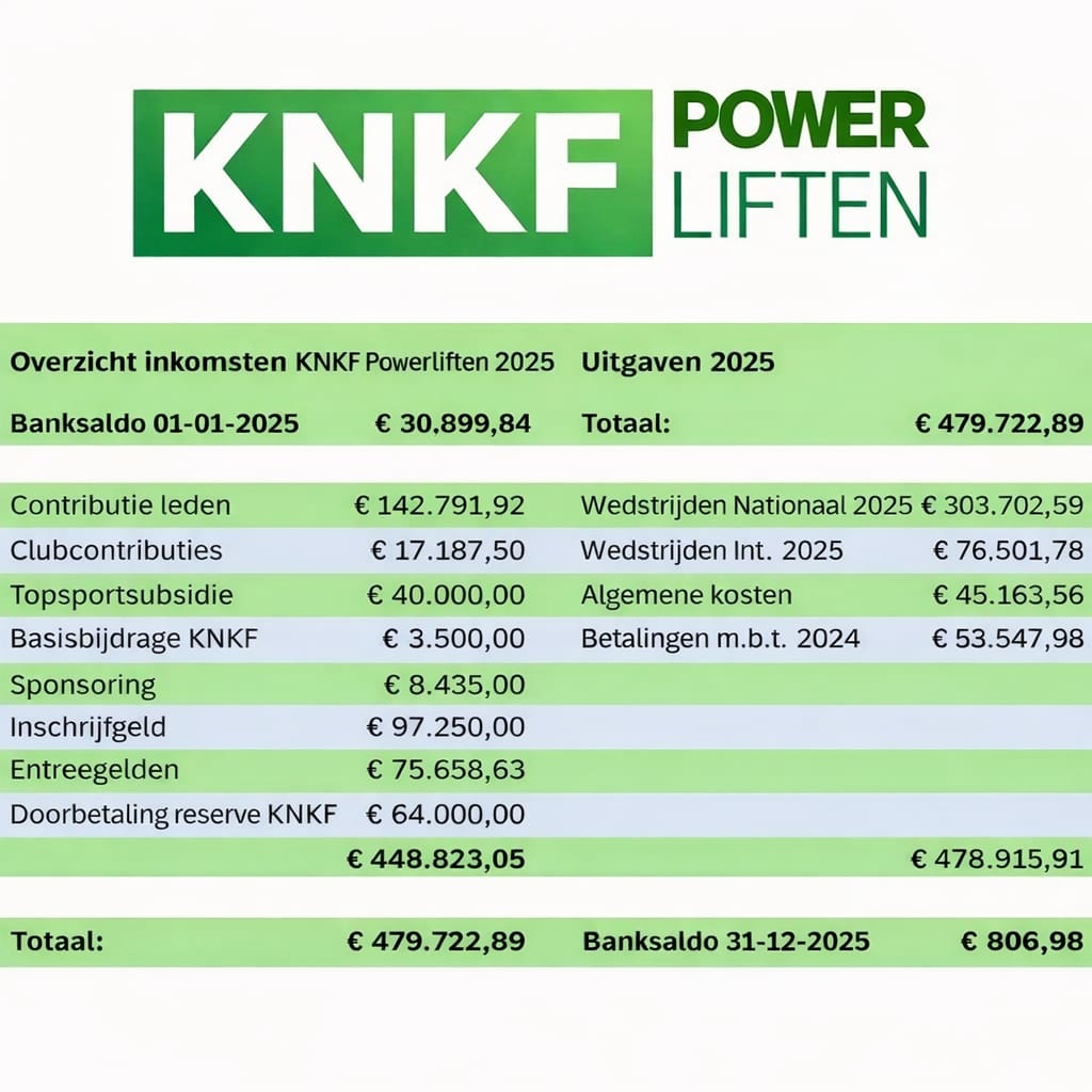 – banksaldo begin 30k en eindigt 0.8k geeft niks. Alleen meer uit dan in. Het zou zomaar kunnen dat geïnsinueerd dat het vermogen van de sectie nu 800 euro is. Alleen aan de linkerkant staat doorbetaling reserve KNKF van 64k. Is dat vanuit de federatie of vanuit de stichting NPB? Dus wat bedraagt het echte vermogen dan van de sectie Powerliften? Dan staat er aan de linkerkant de uitgaven. Hier zullen natuurlijk ook de volgende vragen over gesteld zijn: